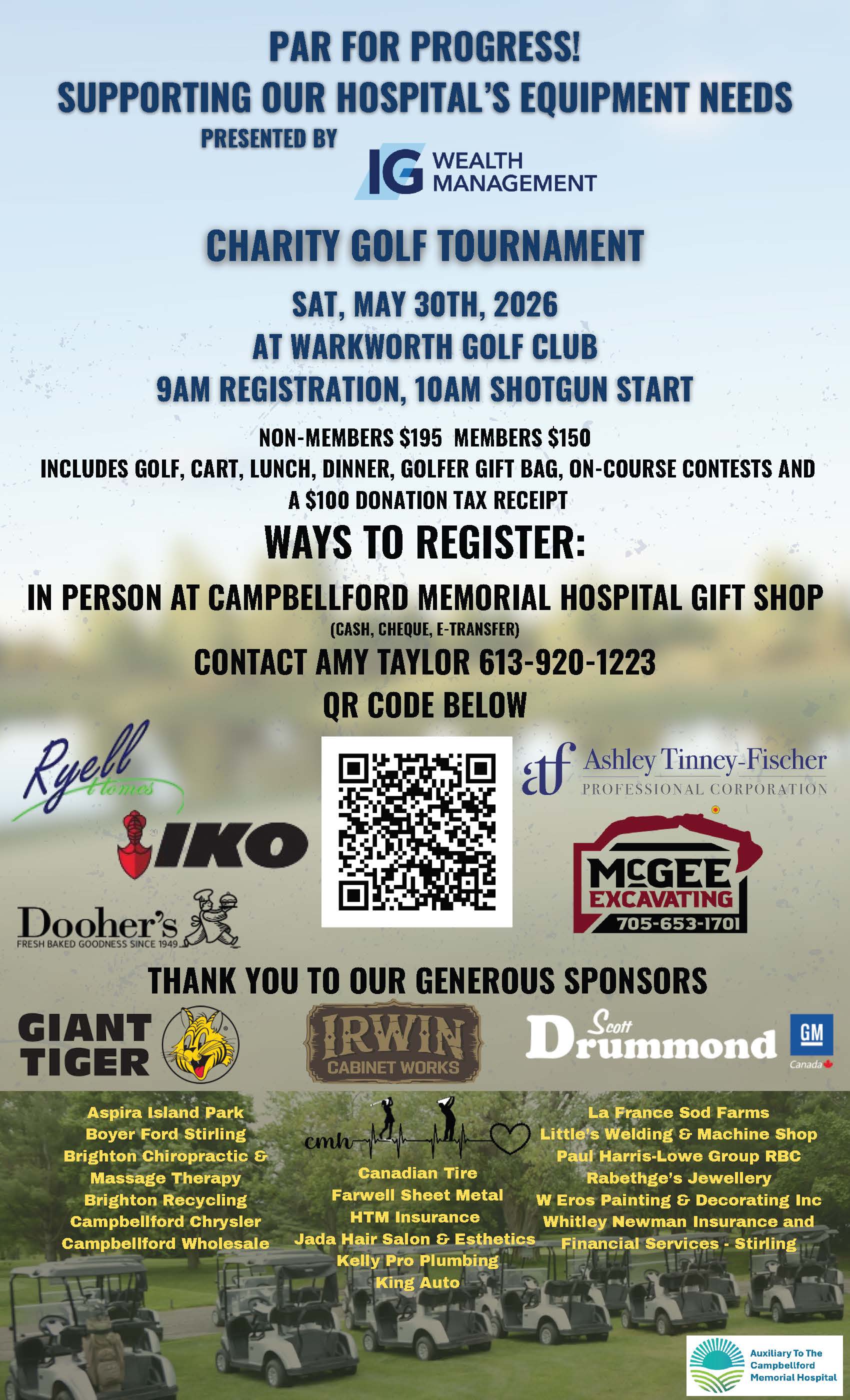 We invite you to join us—whether by entering a team, sponsoring the event, or both. Your support helps strengthen local healthcare and makes a meaningful difference for families throughout our community. Please reach out to Amy Taylor at 613-920-1223.